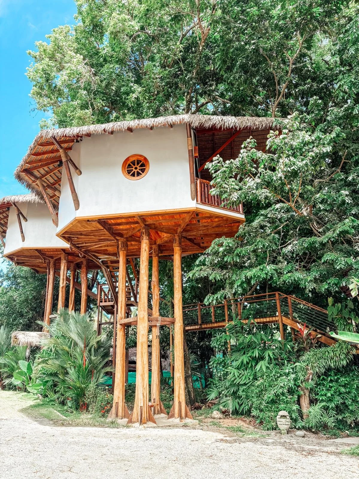 The treehouse includes one bedroom, one bathroom, air conditioning, Wi-Fi, and a private patio or balcony. It’s the perfect blend of modern comfort and jungle beauty.